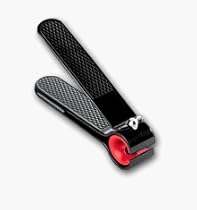 Man-sized stainless steel toenail clipper is one-of-a-kind. Well-designed 55 degree POWER CUT lever makes cutting thick nails easy. Straight blades help avoid ingrown toenails. Clipper includes catcher so nails dont fly away.